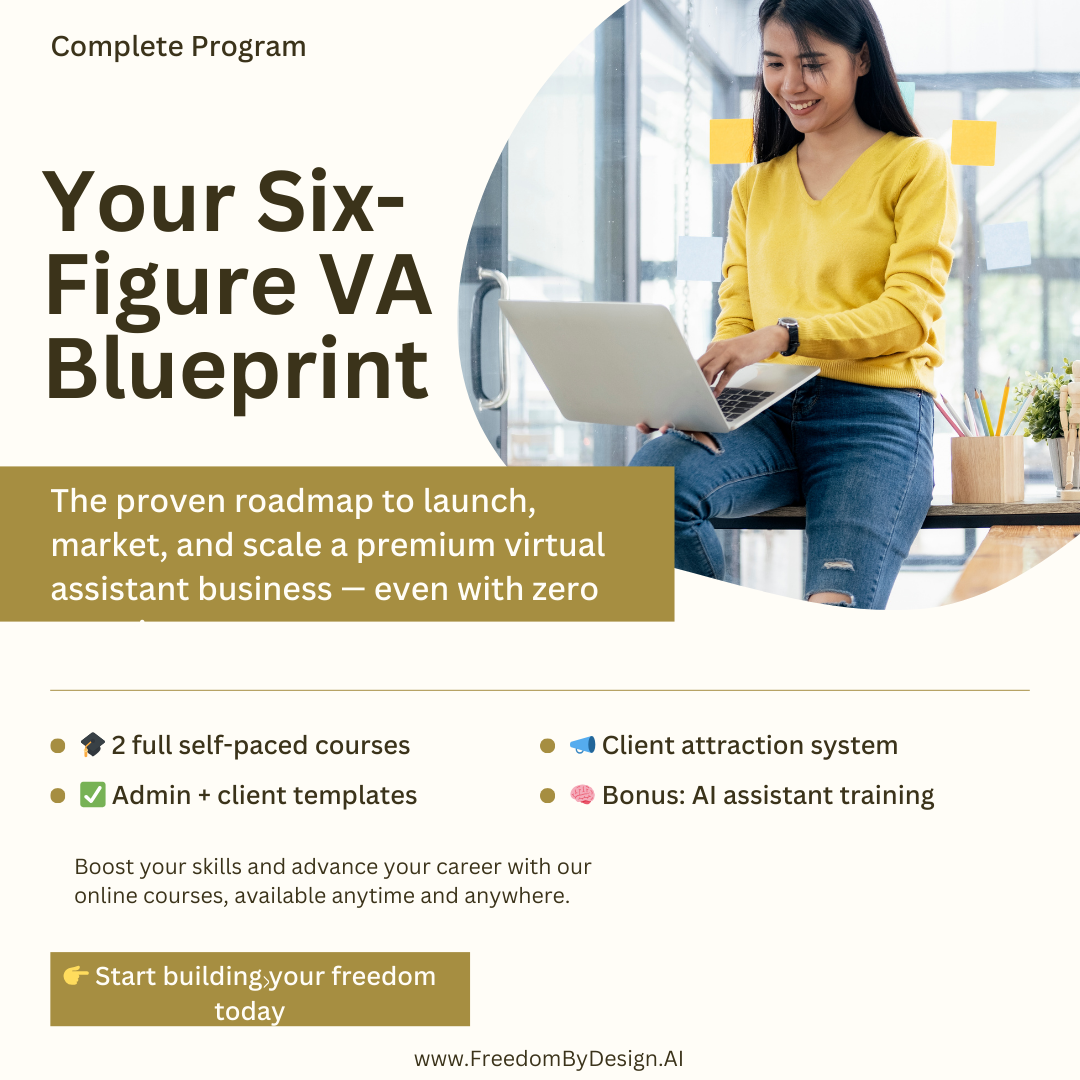Get both foundational and advanced training ā plus marketing, client attraction, and automation strategies ā to start and grow your VA business from scratch.